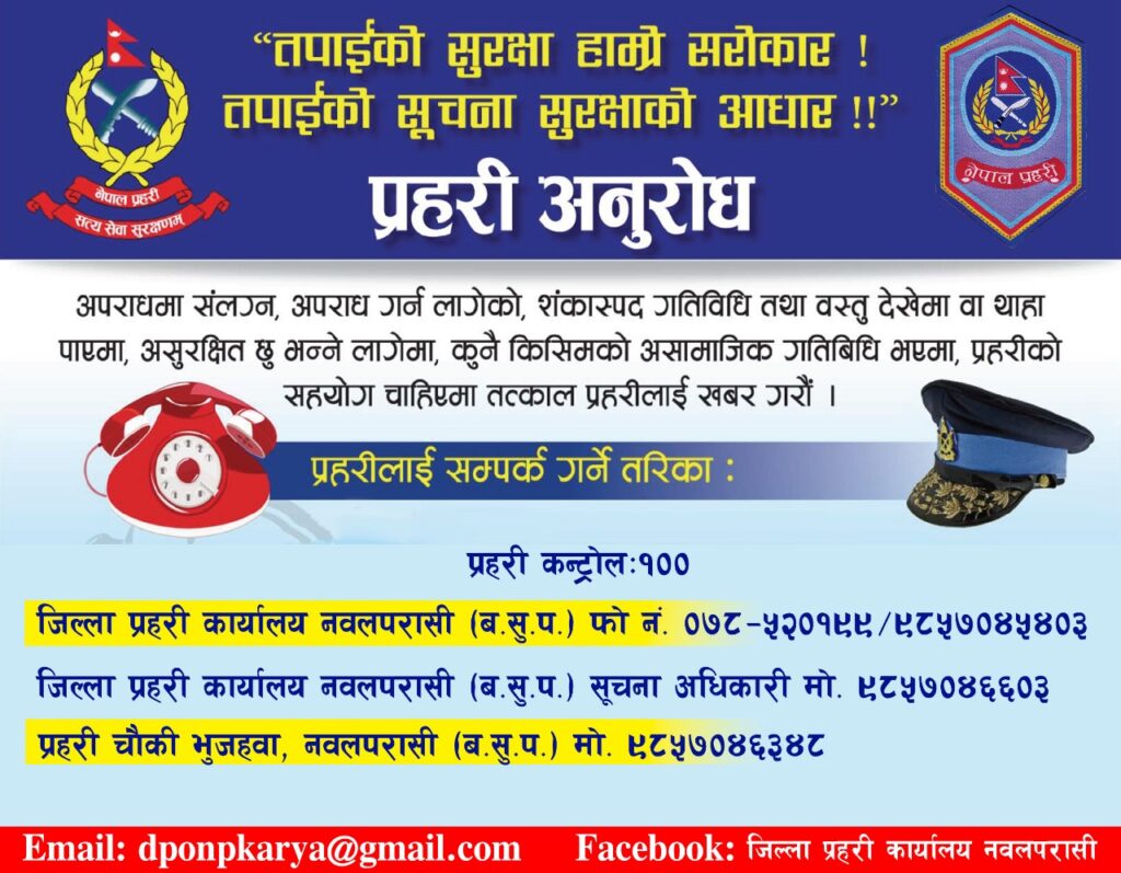 नवलपरासी प्रहरीले ल्याओ सुरक्षित र अपराधरहीत